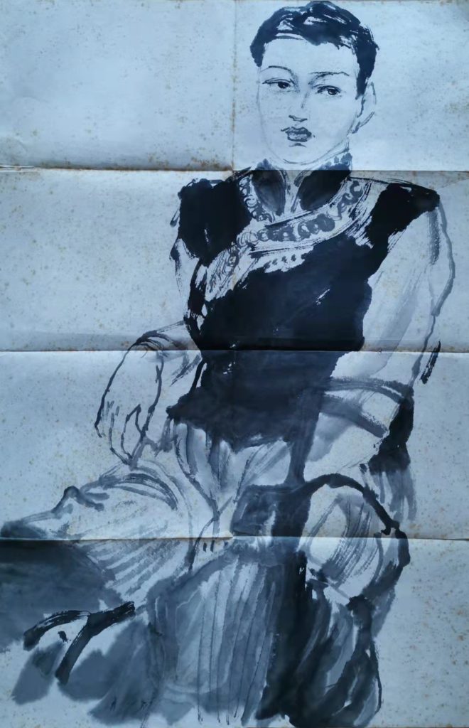 Girl In Traditional Minority Clothing, 68 x 45 cm, 1998, Chinese painting pigments and ink on Chinese rice paper